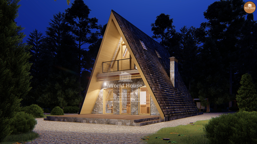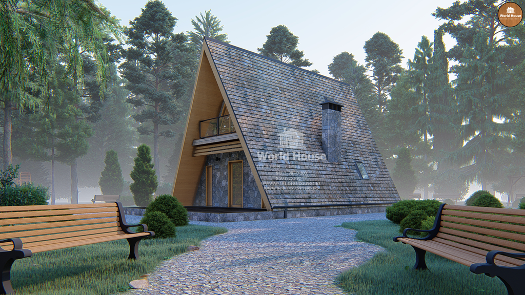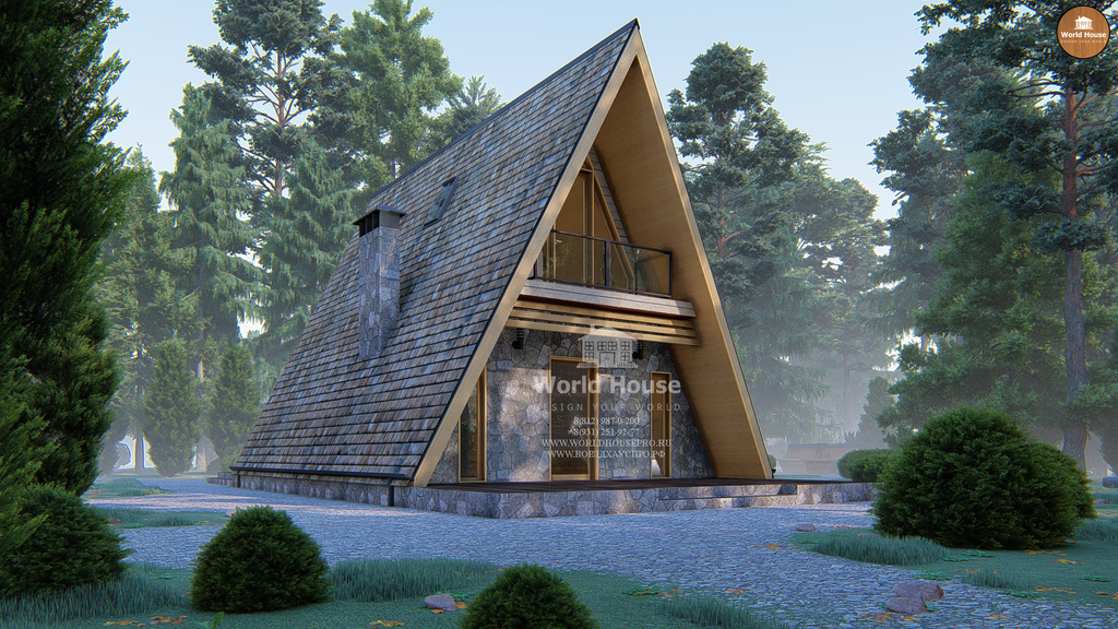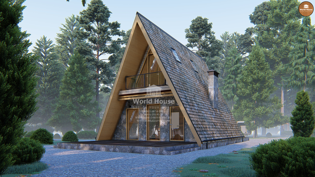 Небольшой, но аккуратный и привлекательный дом треугольной формы в виде шалаша.